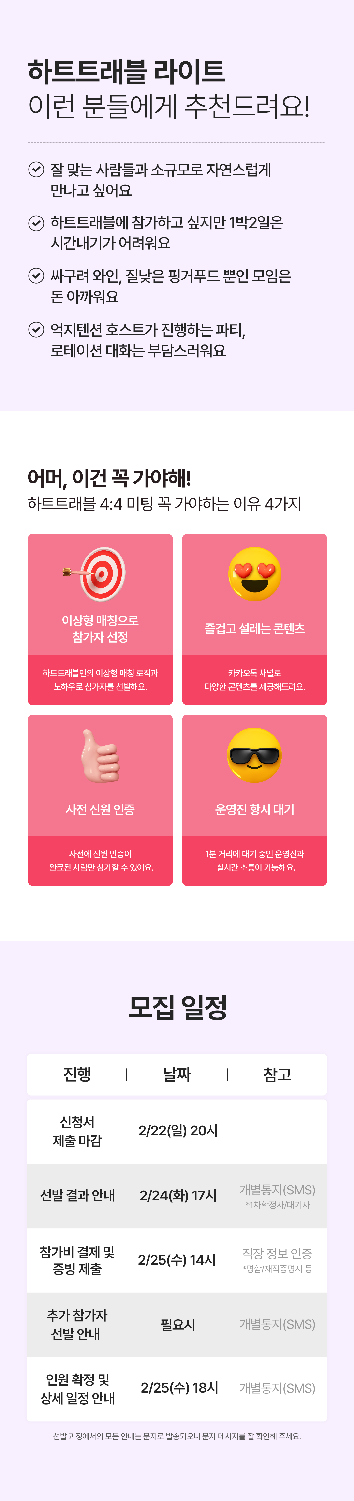 신청자 중 이상형 매칭을 통해 참석자를 모집하여 안내 예정입니다.