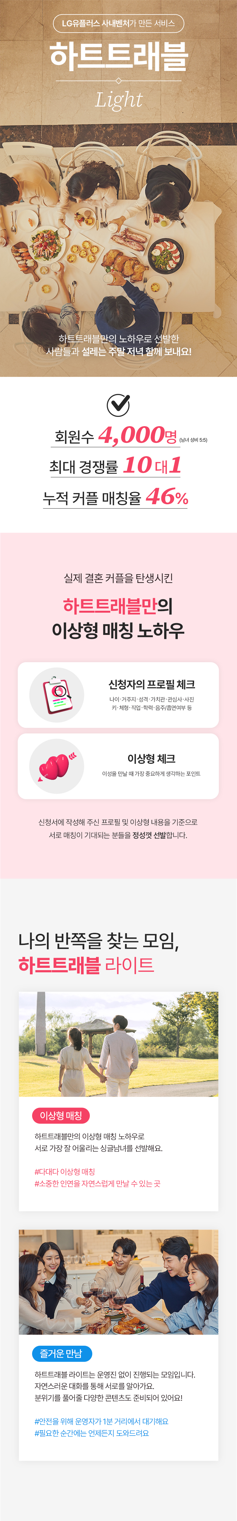 - 신청서에 기재된 정보를 바탕으로 이상형 매칭을 통해 참가자를 선정합니다.