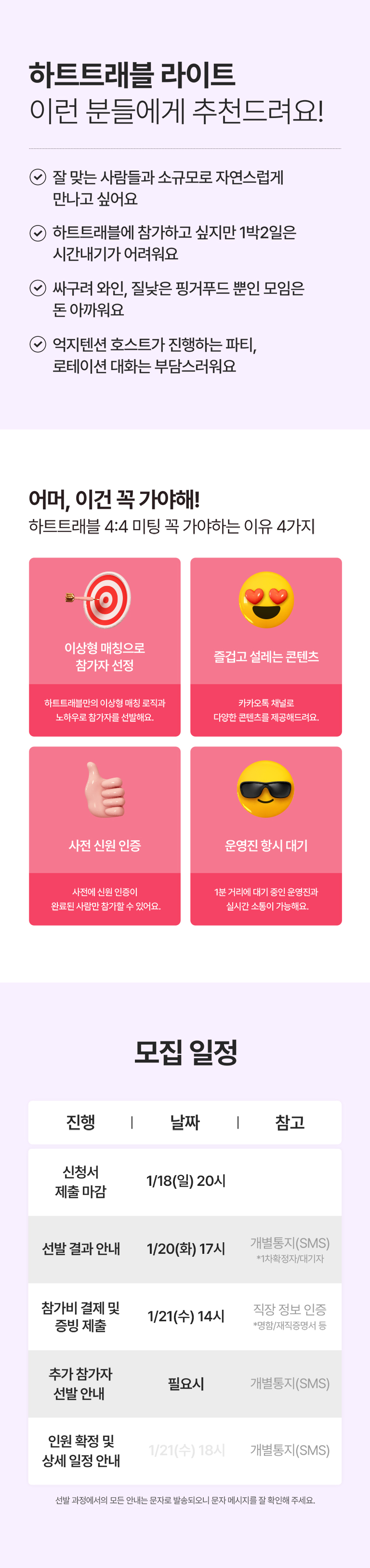 - 신청서에 기재된 정보를 바탕으로 이상형 매칭을 통해 참가자를 선정합니다.